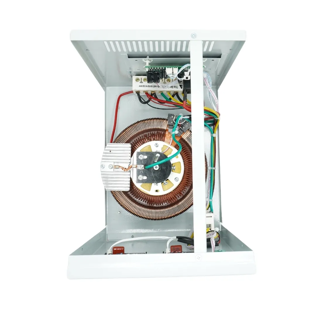 استابلایزر ولتامکس Voltamax ZTY-5000 VA یک تثبیتکننده ولتاژ حرفهای تکفاز با تکنولوژی سرووموتوری است که برای حفاظت از تجهیزات برقی خانگی، اداری و نیمهصنعتی در برابر نوسانات برق شهری طراحی شده است. این دستگاه با توان نامی 5000 ولتآمپر، توان واقعی حدود 4000 وات (ضریب توان 0.8) و راندمان بیش از 98%، ولتاژ ورودی 160 تا 250 ولت را به خروجی پایدار 220 ولت ±3% تبدیل میکند.